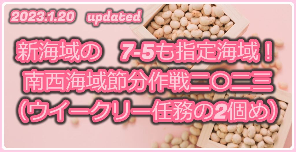 この任務があることによって、豆を一つ残らず獲得して報酬をもらうには、金曜の深夜から月曜の未明までの短い時間で新海域を攻略して、7-2・7-3・7-4という一癖ある海域と一緒に、しかも艦指定ありでこなさなければならない。という状況が生まれてしまったのです。