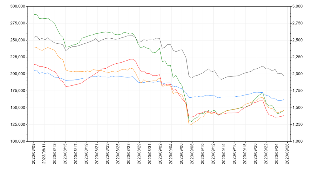 | 記事掲載時(9/25) | 146327 | 146261 | 199275 | 139054 | 1610 |