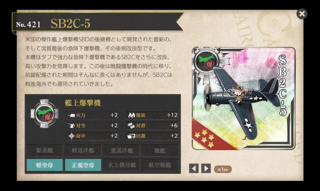 ↑かなり強いと言われている超レアな海外艦載機。何の特効もなかったらしいのですが…。(何回かどっかで使ったけど結局のところよくわからなかったです)