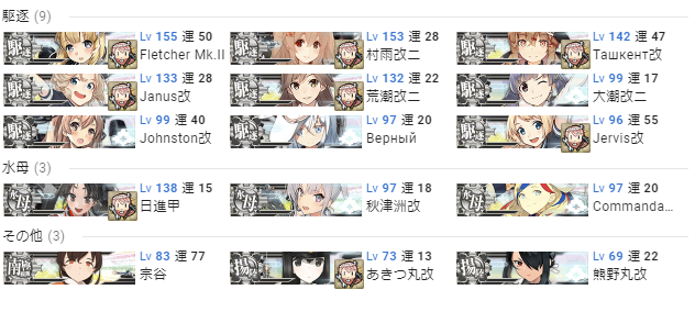 艦載機パズルがしっかり組まれていれば誰を使ってもおkでした。輸送マップを機動部隊で運べるのは非常に快適でした。