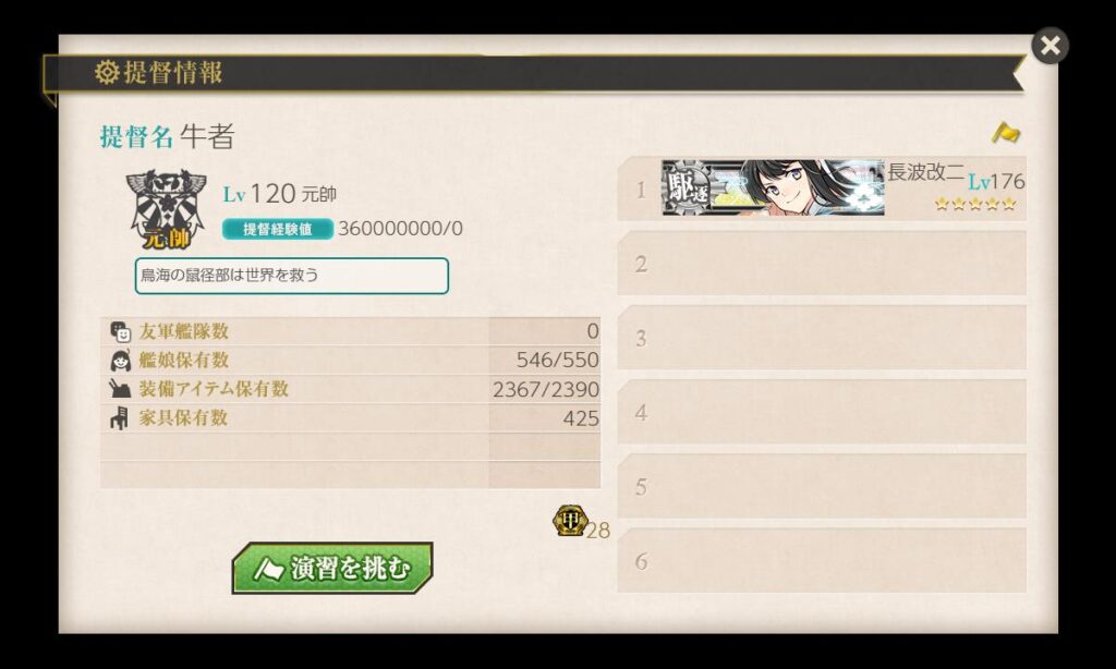 なので今後、提督経験値に対する何かしらの対策が入ることが予想(期待)されますが、どうなんでしょうね。自分みたいなゆるふわ勢が聯合狙えるくらいになっちゃうような、そんな上位ランキングでいいのかなぁと思うわけで。