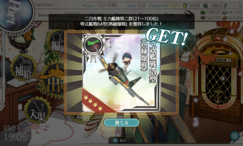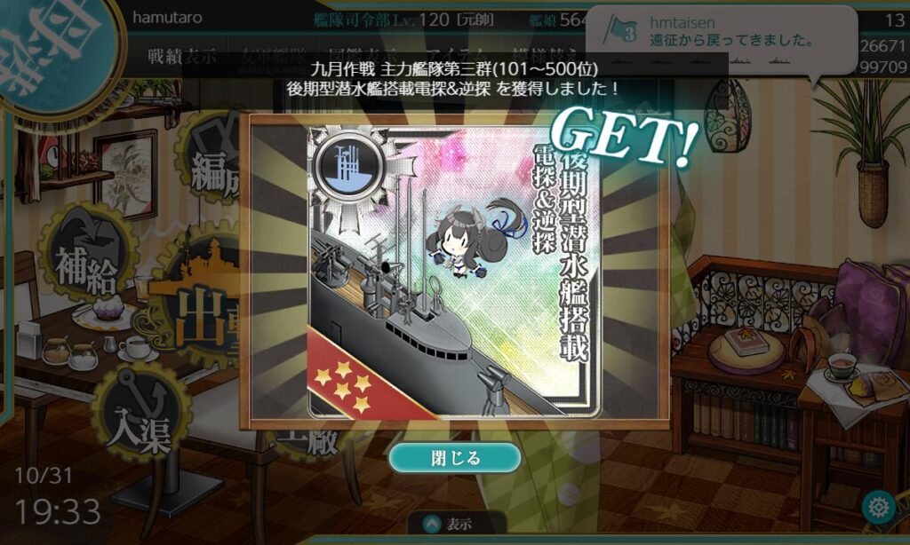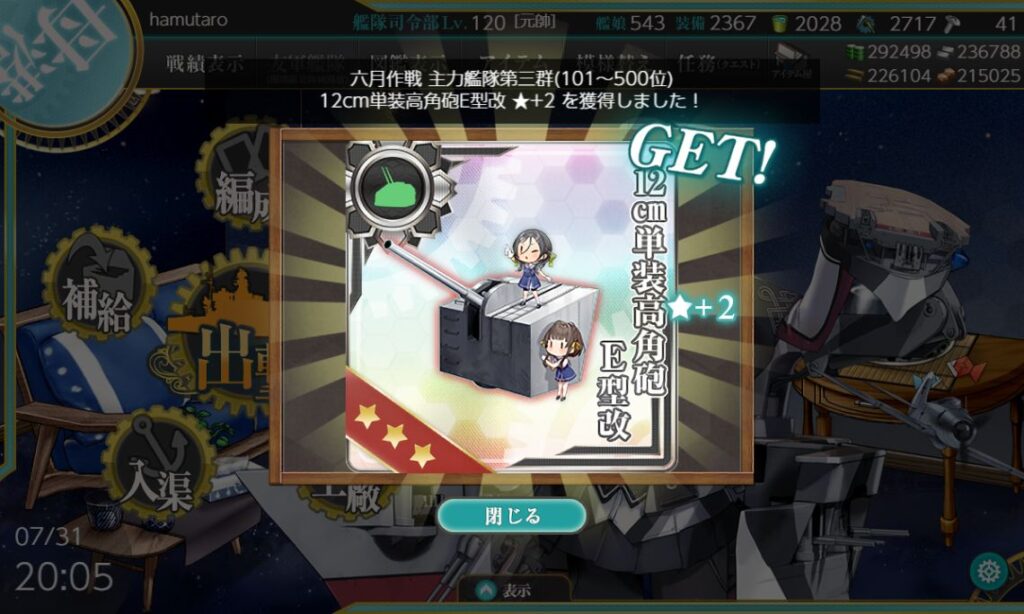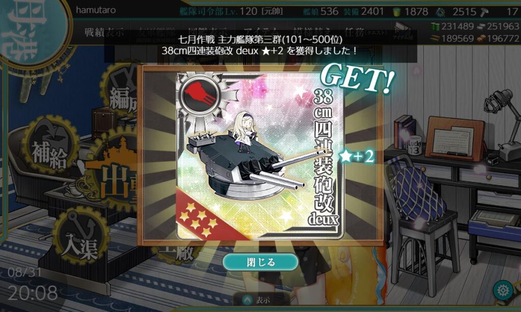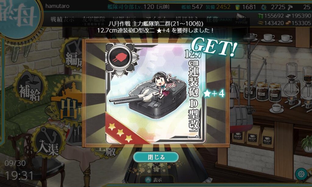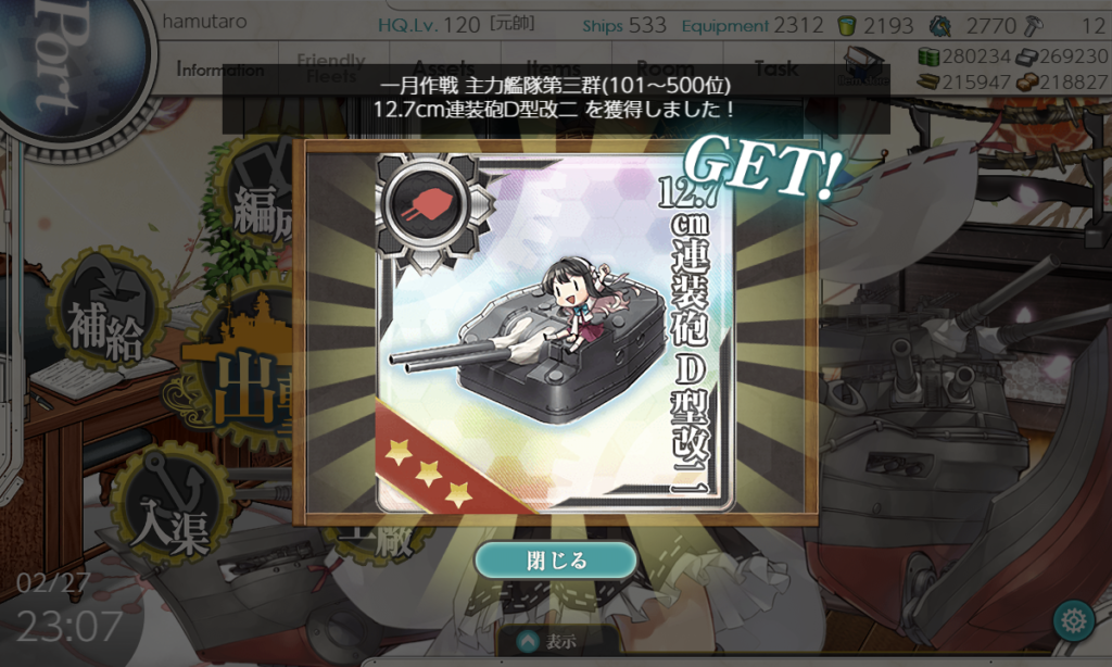 この月の作戦、もう少し頑張って1群に入っていれば失ったD3砲を回収できましたが、イベント中だったこともあり、ここが限界でした。
