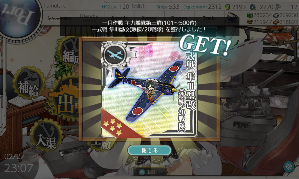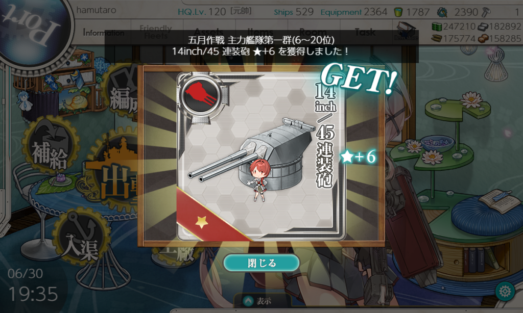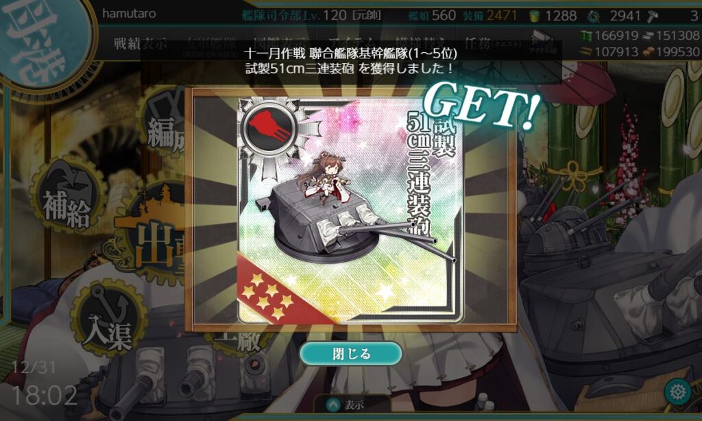 引き継ぎ戦果が1000近くになっていたこともあり、資源資材の回復を図りながらマイペースで走ることができました。