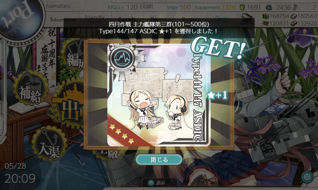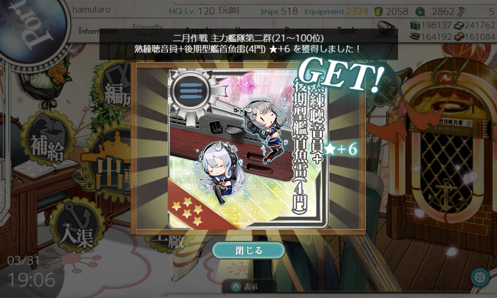 5月は頑張って1群入ったけど・・・。と、いただいた当初は思わずにはいられない内容でした。が、Nevada砲は夏イベで大特効がつきましたねー。さらにみちしぐ電探が任務的に重要になるとは・・・!