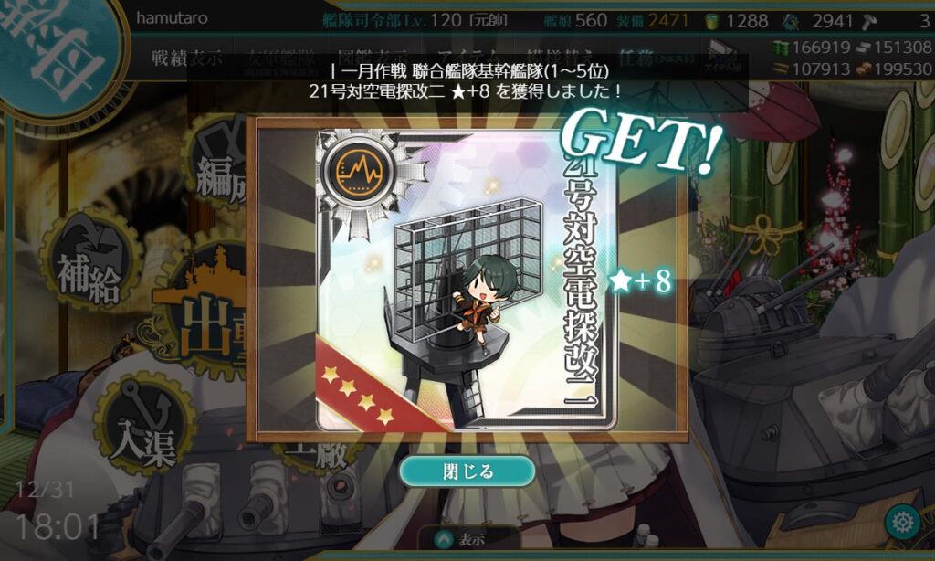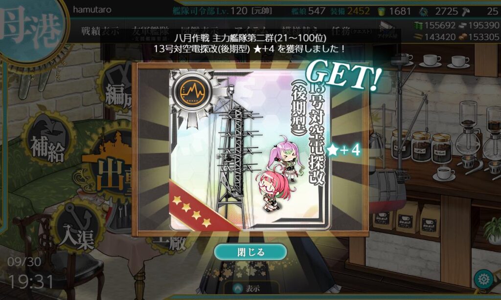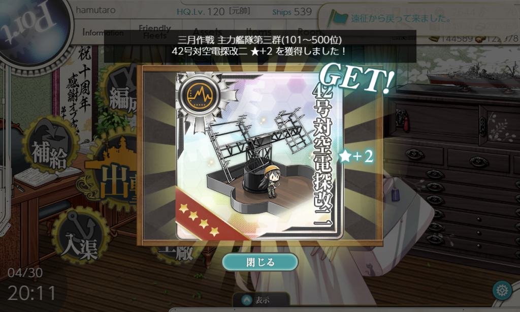 イベントにも通常周回にも活躍できる嬉しい装備。戦果周回してると強い電探はいくらあってもいいですね。