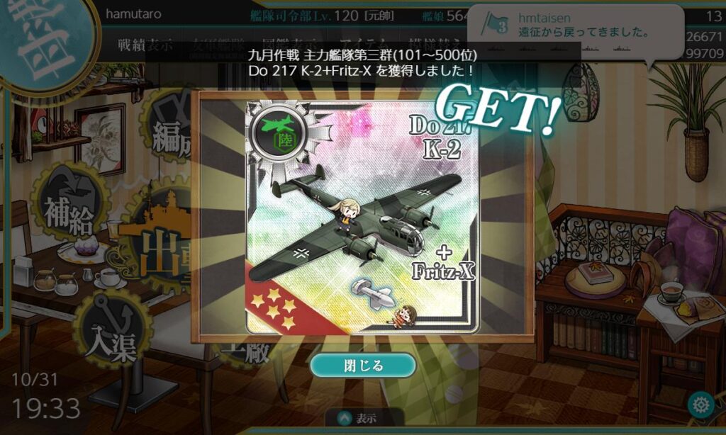 ツイッターがⅩに変わったのを記念してかどうかは置いておいて、Fritz-Xは嬉しい報酬でした。イベントでも大活躍してくれました。