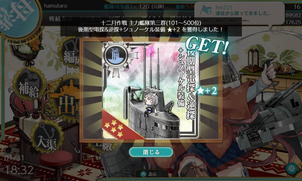 イベント最終エリアで伊201と伊203についた強力な特効。まさに使いなさいと言わんばかりの報酬内容でした。