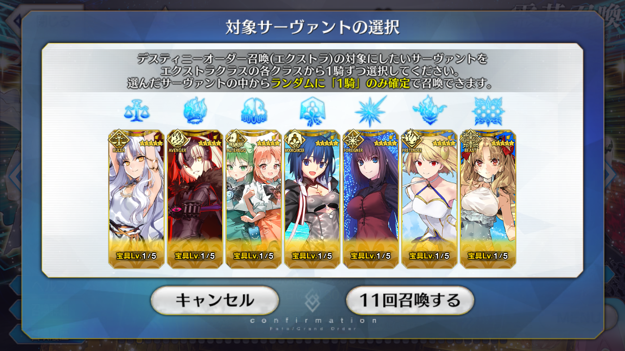 福袋に関してはカテゴリ分けがどうなるか気になるところでしたがほぼ予測通り。予定外だったのはデスティニー召喚。EXクラスが分かれたことで狙いやすくなったのは嬉しかったですが若干出費が増えたのが気になりました。福袋はカテ選びで悩んだのでデスティニーをまずは引いてから、という感じだったかと。結果は以下の通りです。