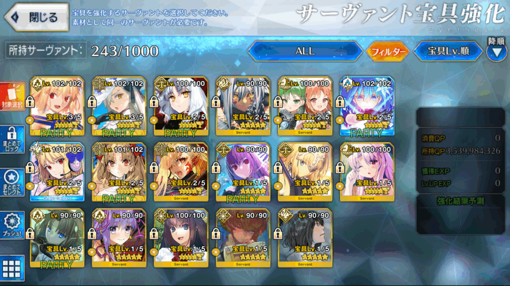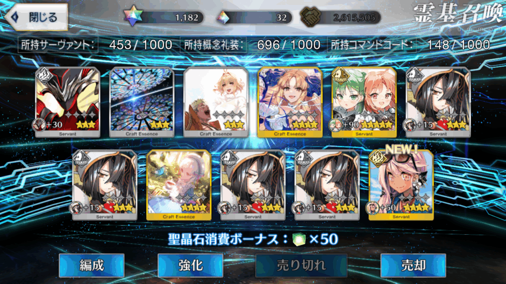 所長が終わった時点でかなり石に余裕があったので、ここぞとばかりに宝具を重ねたい鯖に使いました。結果は以下の通りです。