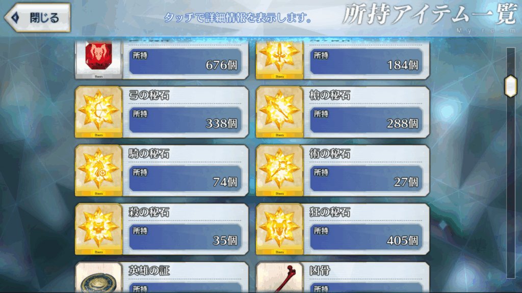 新規鯖が急激に増え、スキルやアペンドも適宜上げていったのでしばらくためていた素材も枯渇するものが。そして始まった水着イベは宝箱方式で素材がおいしい。できれば石を割ってでも周回したいところでしたが、戴冠戦の絆上げのほうを優先したいので宝箱回収はそこそこにして後半の戴冠戦に備えました。とはいっても素材は早めに回収したいし、ピュアプリは極力使わない方向でいきたい。そして術石がいつも足りてない。と。好きな鯖が偏るのもありますけど、サポーター枠って大体術石持っていきますからね。