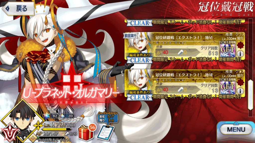 決してノーマークだったわけではないのですが、このタイミングでEXクラスの戴冠戦がくるとは正直なところ思っていませんでした。EX枠は好きな鯖が多いのでここが頑張り所、ということで、かなり気合入れて周回しました。