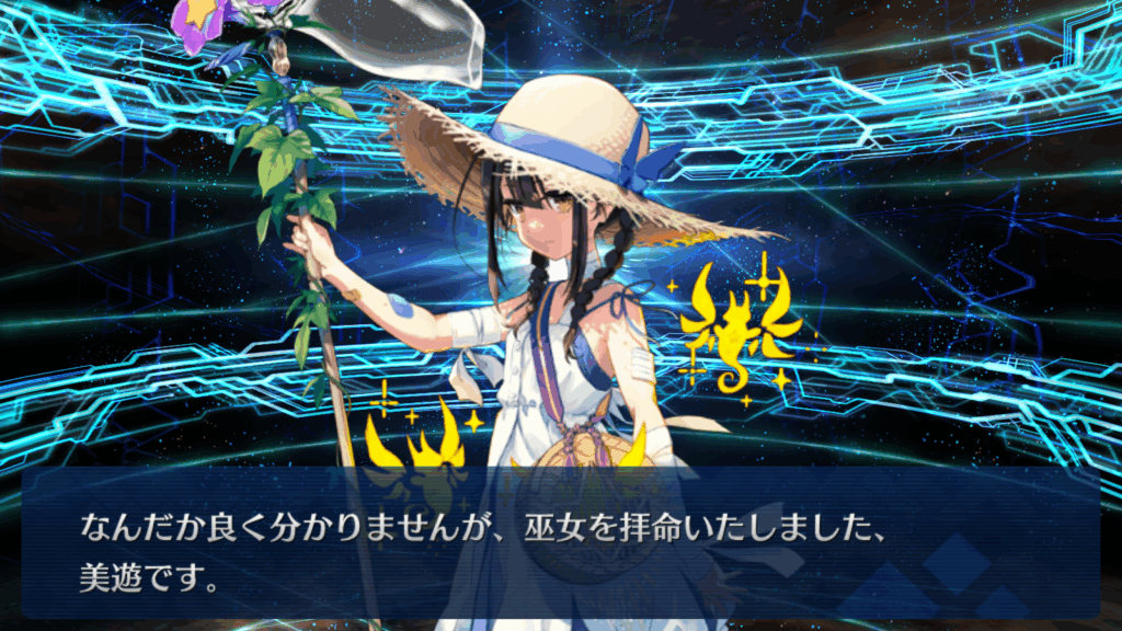 スクショの記録を見ながら記憶をさかのぼると、8月3日のフェスが終わった直後、福袋&デスティニー召喚より前に会場の熱気を感じながらオルガマリー所長PUを回し始めたようです。いつもとは違う勢いで3凸目まで回し、新規礼装が完凸した段階でストップ。水着イベに備えました。